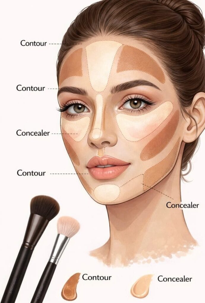 الفرق بين الكونتور والهايلايتر: أين يوضع كل منهما للحصول على ملامح مثالية؟
